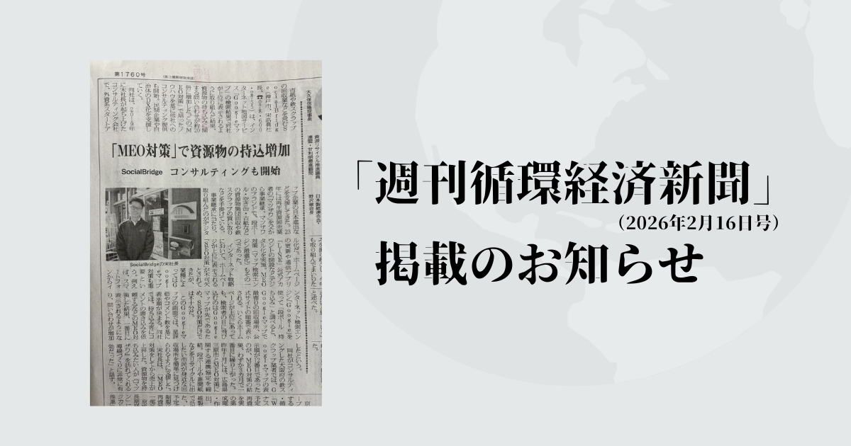 このたび「週刊循環経済新聞」2026年2月16日号にて、SocialBridgeの取り組みが掲載され… -