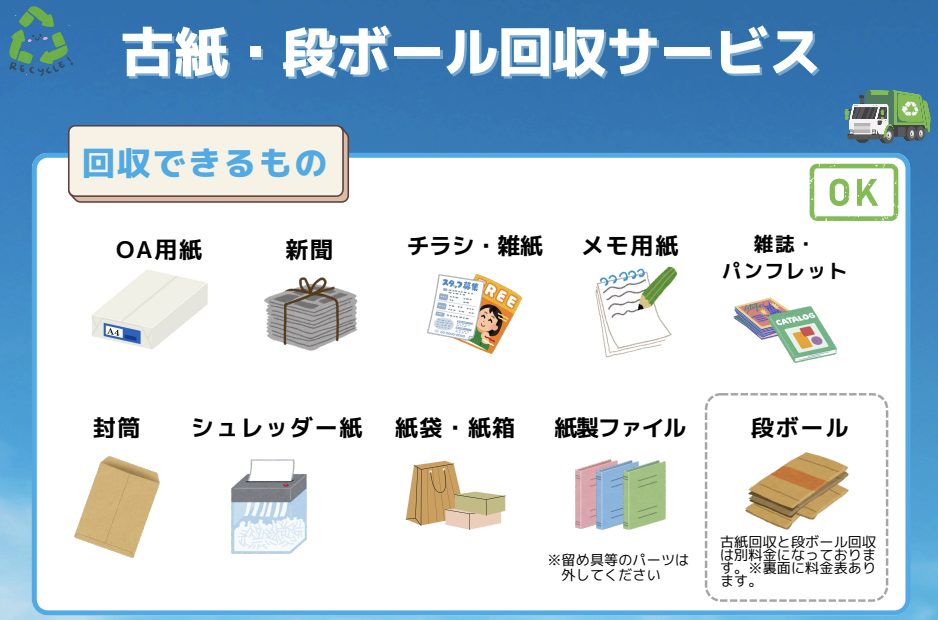 SocialBridgeでは、以下の古紙の回収に対応しています。